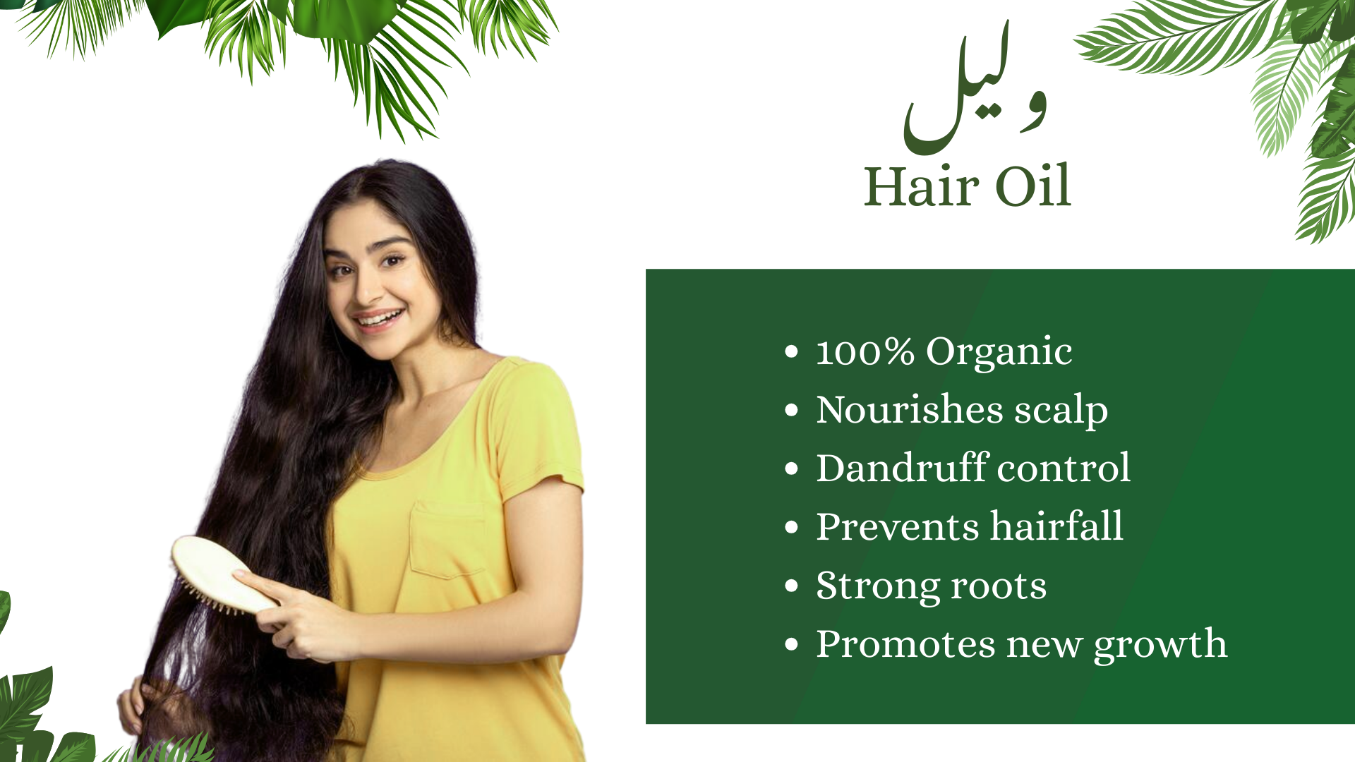 The secret to beautiful hair — Waleel Hair Oil! ✨ This natural and organic oil makes your hair shiny, silky, and stronger while promoting healthy growth. Infused with powerful botanical ingredients, it nourishes each strand from root to tip, giving your hair new life and natural radiance. 🌿